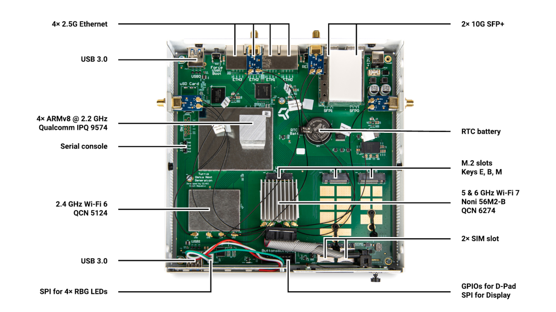 Brzy přijde do prodeje nový Turris Omnia NG. Pokud by někoho z vás zajímala technická specifikace M.2 key slotu, tak se jedná o PCIe 3.0 x2 kompatibilní s M.2 NVMe SSD formátu 2230 a 2242.