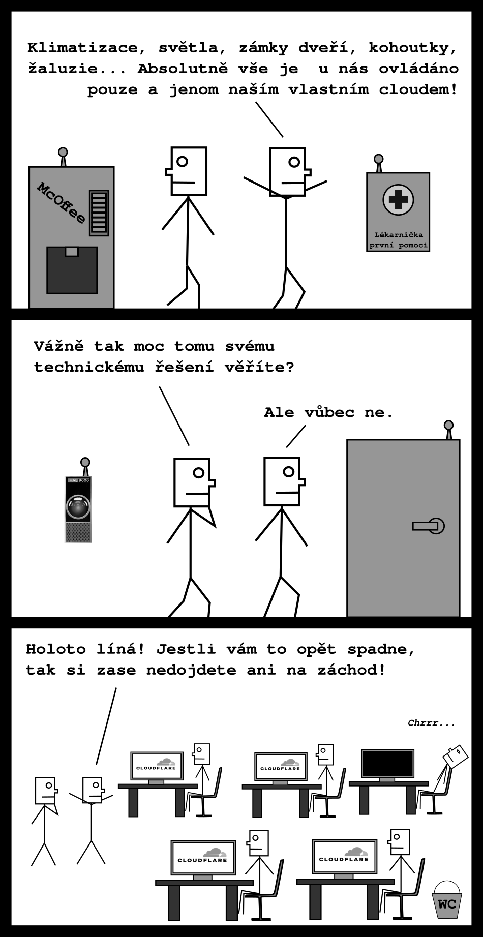 Padá Cloudflare, něco si přejte. Třeba aby to co nejrychleji znovu nahodili, nebo alespoň aby někoho vyhodili