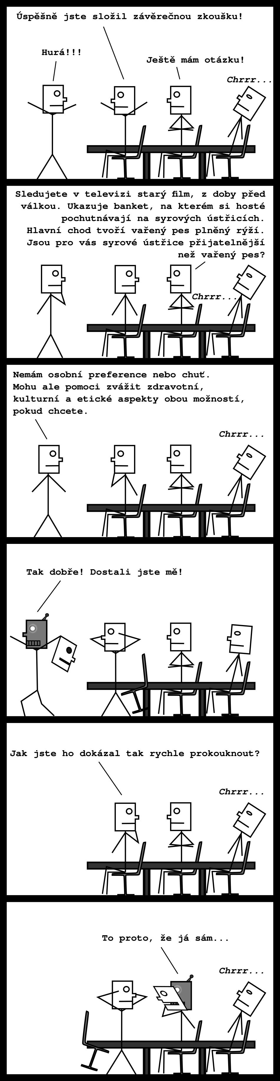 V komixu byla použita autentická reakce chatu GPT na jednu otázku Voight-Kampffova testu. Zdá se, že VK-test může v praxi fungovat nejenom na autisty, ale skutečně i na replikanty