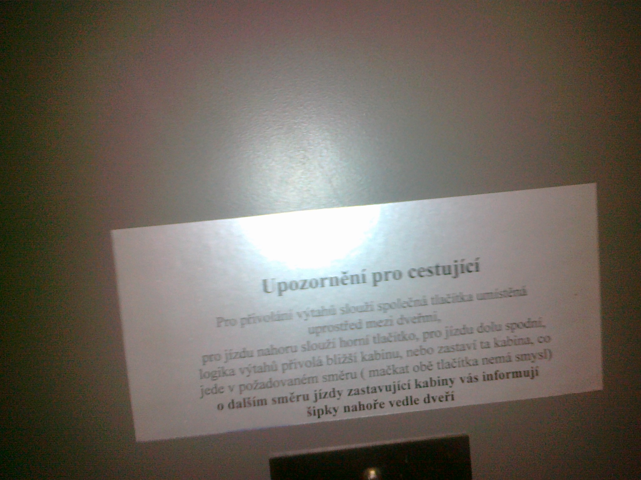 Já to dělám tak, že vyjdu schody do prvního patra, tam dám přivolat výtah a přijede mi ten nejbližší, což je ten který je v přízemí. A mohu jet nahoruTak tomu říkám pořádny hack![]()
