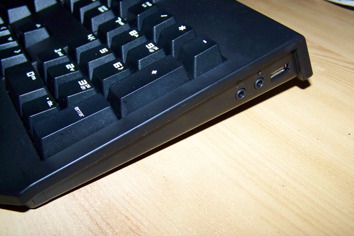 Na klávesnici zaujme její masivnost, jak někdo poznamenal v nějaké recenzi, je to docela ideální zbraň pro případ zombie apokalypsy. Přívodní kabel, do kterého se vlezly dva USB kabely a audio působí dojmem napájecího kabelu k cirkulárce a je opletený jakousi plastovou hmotou.