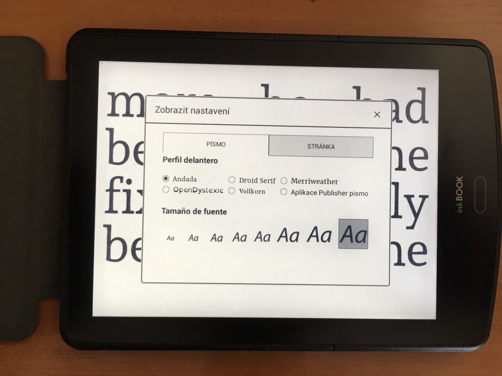 Když už jsme u nastavování landscape módu, tak považuji za maximálně otravné, že nejde nastavit globálně. Musíte to dělat pro každou knížku zvlášť, to samé s velikostí písma.