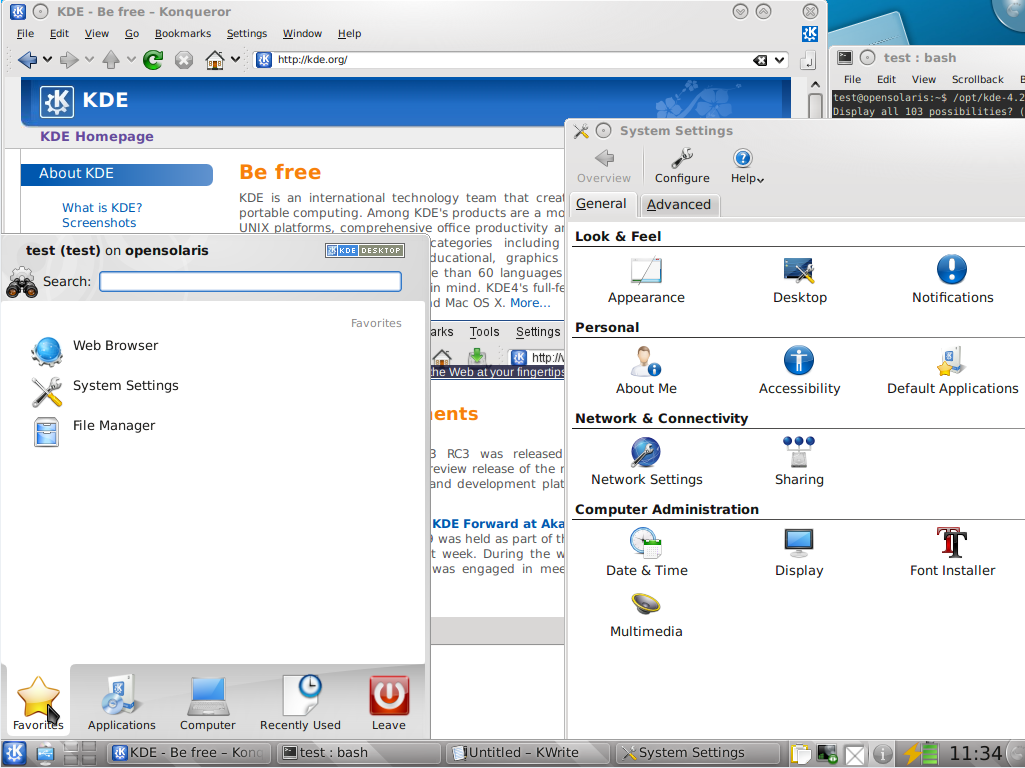 Korona 0.0.2 [1.4GB] je live CD OpenSolarisu 2009.06, do kterého byla doplněna většina KDE balíků a jako výchozí sezení je nastaveno KDE. To je vše, víc integrace opravdu není. Spousta věcí padá, ale co nepadá to se zase drží dobře. Dokonce vím o jednom člověkovi, co to má jako pracovní prostředí.