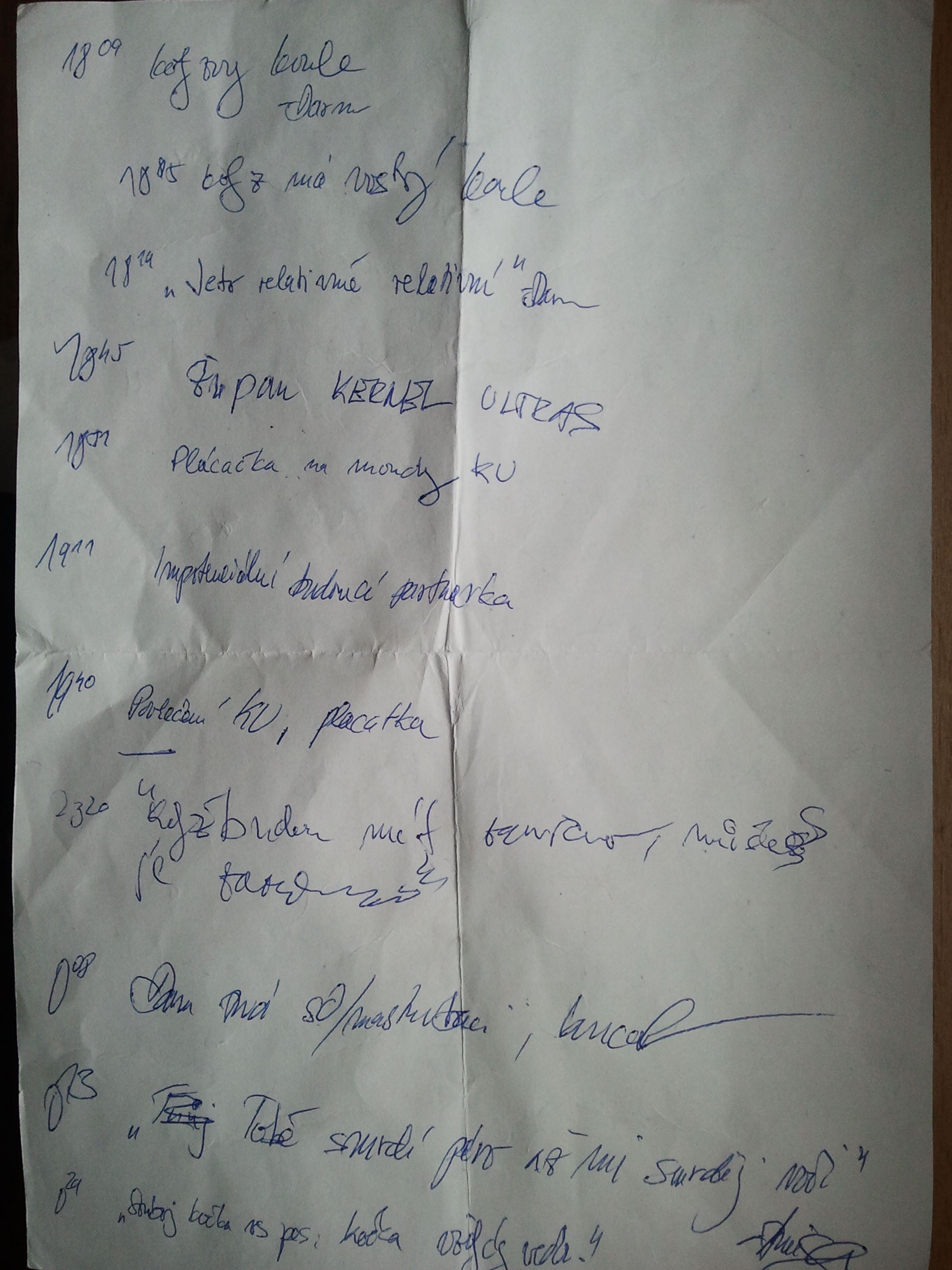 Protože jsem asi nezveřejnil fotky z minula (už nevim), tak je přikládám, psali jseme cosi jako záznám, dešifrování ponechám na čtenáři