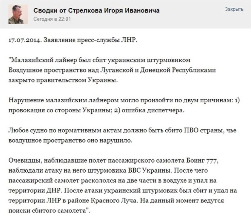Sestřel opolčenci je jedna z možných variant, navíc ne úplně nejpravděpodobnější.Jaká je pravděpodobnější varianta? Podle dostupných informací bych tomu dal tak 95%. Proč separatisti mazali z Twitteru a z VKontakte? Co ta nahrávka, kde se přiznávají? A proč brání vyšetřování?