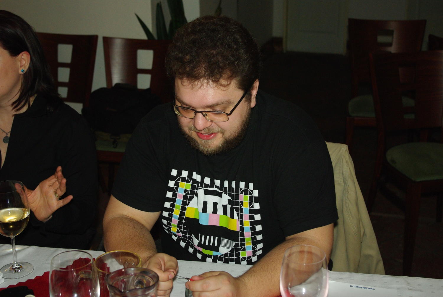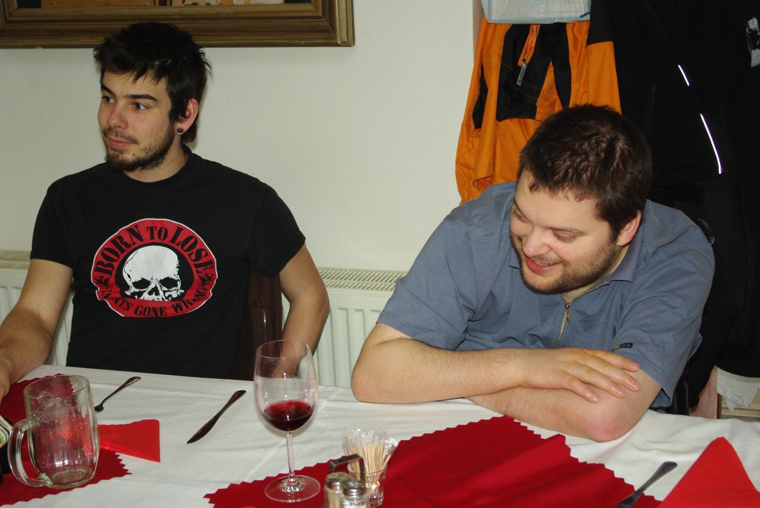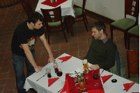 Kdo tam nebyl, přišel o povídání Ivana Bíbra o průběhu výběrových řízení na ministerstvech (a sklizni chmelu), někdo (bohužel si nepamatuji jméno) také povyprávěl o způsobu zacházení s licencemi na drahý OS a jejich počty ve státní správě. Samozřejmě, že se kromě těchto vážných témat probíraly i věci čistě linuxové. Robert se podělil o problémy s organizací rozhovoru s Markem Shuttleworthem (a o tom, jak musel jeho sekretářce vysvětlovat, že opravdu nevolá z válečné zóny). Mimo to proběhl i pokus o shození Windows XP hostům u vedlejšího stolu, hrály se i hry.