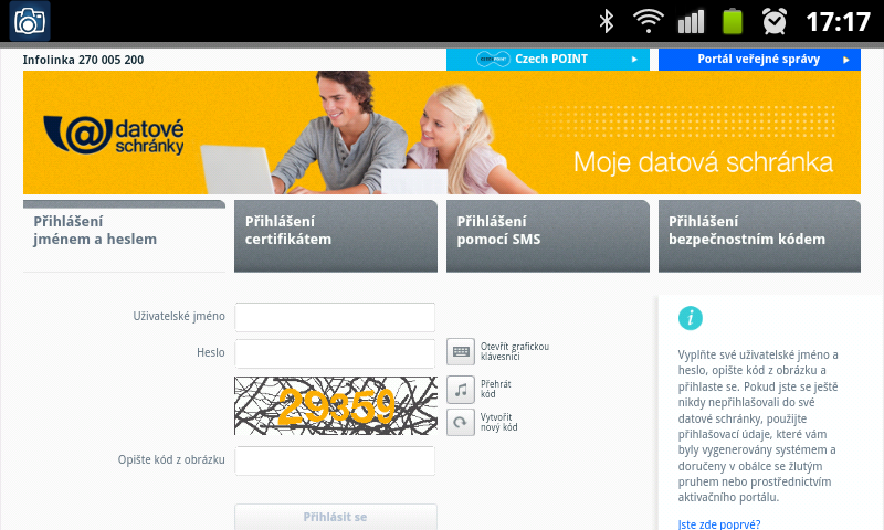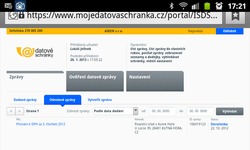 Prohlížeč Opera Mobile zobrazuje stránky webového rozhraní ISDS prakticky úplně stejně jako prohlížeč od Googlu. Rozdíl je v reálu jen v tom, že když si zobrazení zvětšíte, zužuje Opera text aktuálního odstavce tak, aby se vešel na šířku displeje. O něco složitější situace je u mobilního prohlížeče Firefox. Ten má totiž nahoře fixní adresní řádek (i když možná existuje nějaký způsob, jak ho schovat), který při zobrazení na šířku zabírá nemalou část displeje.