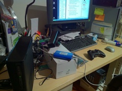 Zpátky ke Kinectu. Kinect nelze k počítači připojit přímo. Přímo jej lze připojit pouze k novější konzoli Xbox 360 S. Ta je vybavena AUX portem. Jedná se o proprietární USB port. Abychom mohli Kinect připojit k počítači, nebo i k originální konzole Xbox 360, potřebujeme speciální napájecí kabel jež slouží také jako AUX / USB převodník. Kinect je nabízen v různých baleních. Pokud jste si koupili Xbox 360 v balení spolu s Kinectem, pravděpodobně napájecí kabel nemáte. Pokud jste si koupili Kinect v balení s některou hrou, je možné, že kabel také nevlastníte. Jistotu máte, pokud jste si zakoupili Kinect samostatně.