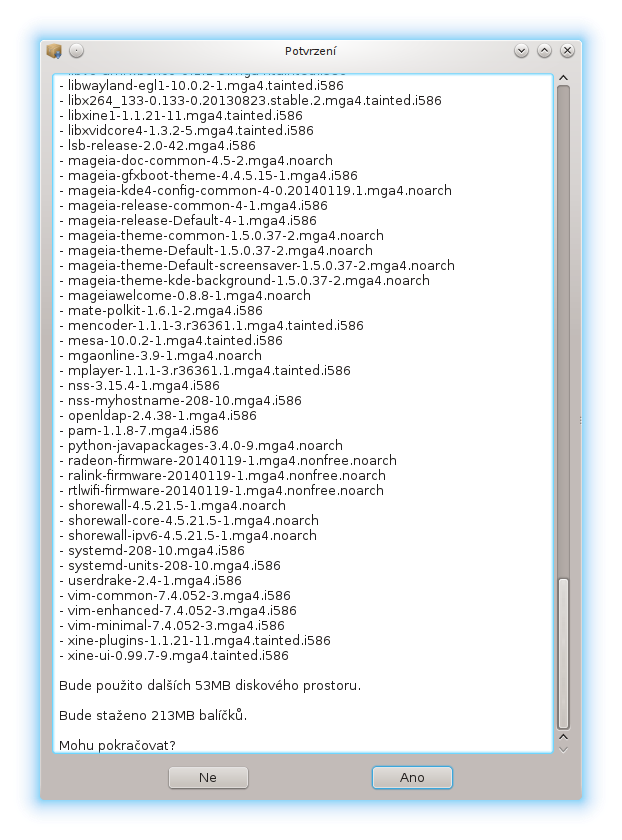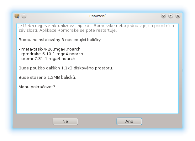 V tu chvíli obvykle systém „houkne“, že jsou k dispozici první aktualizace. V aktuální situaci RC verze se nejprve aktualizoval balíčkovací systém jako takový. Poté již následovala velká várka všeho možného, včetně kernelu 3.12.8. V tu chvíli následuje restart kvůli novému kernelu a dalším částem.