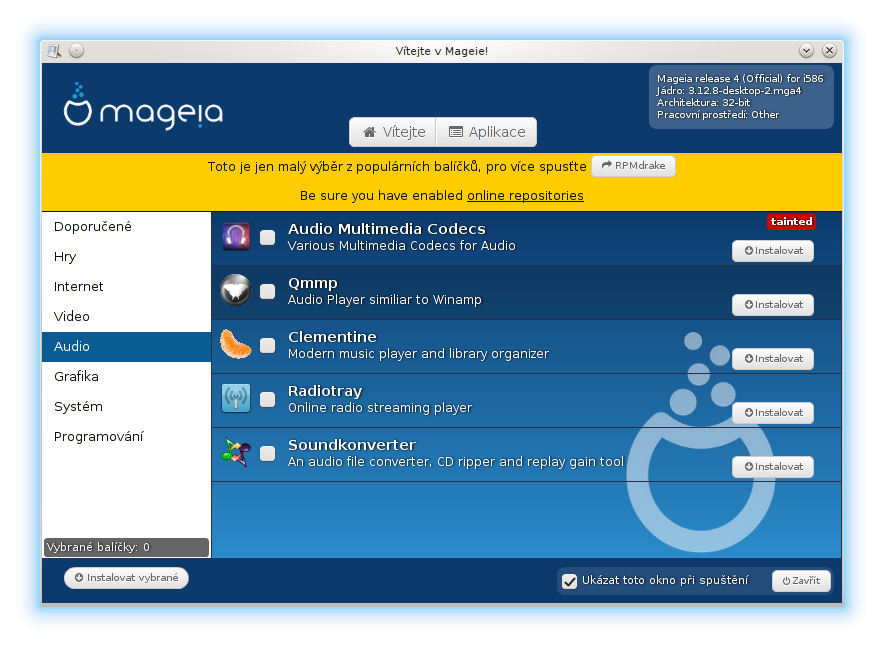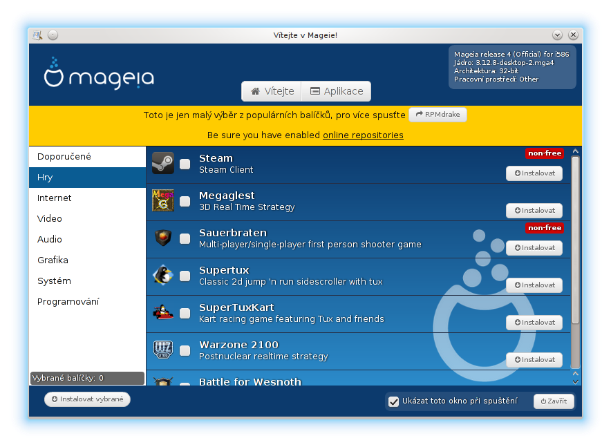 Přímo z tohoto okna lze instalovat nejběžnější programy jako ty pro přehrávání videa a hudby, různé pluginy a nástroje, ať již otevřené, či uzavřené. V souvislosti s aktuálním vývojem se sluší dodat: včetně Steamu, Flash Pluginu, Skypu či Opery. Je jasně zvýrazněno, pokud jde o uzavřenou aplikaci a z okna je možné vše rovnou spouštět.