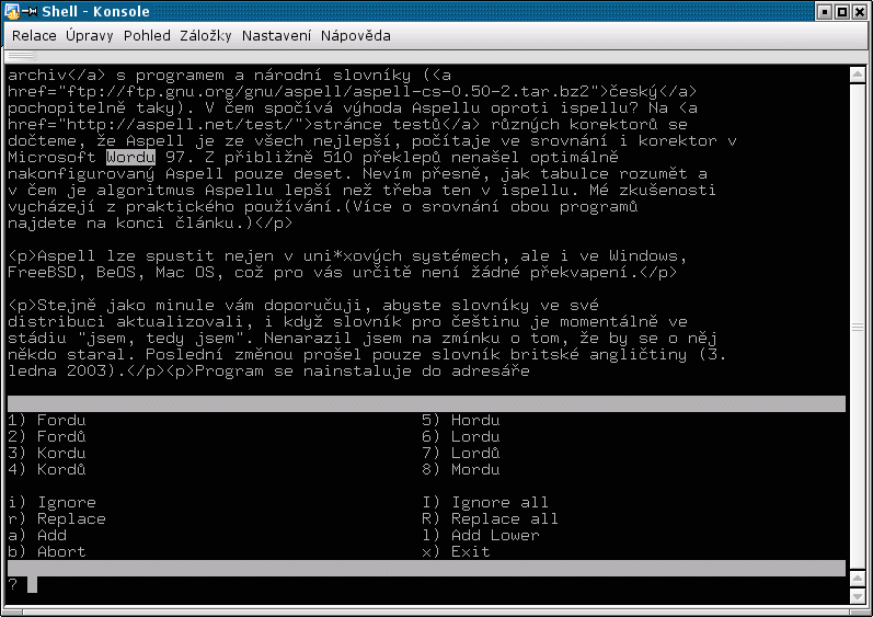 Praktická věc. Než se s Aspellem naučíte pracovat,