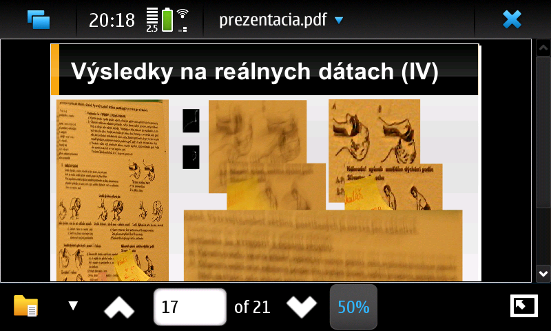 Evince je známy prehliadač PS, EPS, PDF, DVI a DJVU súborov. Oproti vstavanému prehliadaču PDF umožňuje napr. otáčanie stránok, presnejšie zoomovanie či vyhľadávanie v texte, rýchlosť renderovania je podobná. Ak má váš data-projektor vstup na kompozitné video, je možné aj za použitia tohoto programu z N900ky vyrobiť šikovného pomocníka na prezentácie.