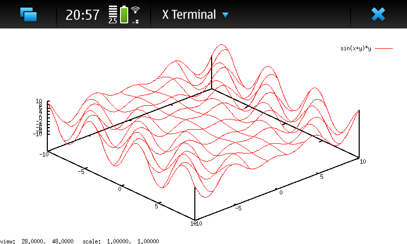 Ďalšia dvojica programov sa dá považovať za švajčiarsky nožík na matematiku. Gnuplot je veľmi rozšírený a často používaný nástroj určený na kreslenie grafov (okrem iného ho používa napr. aj Octave). Podobne ako na desktope, aj na Maemo sa ovláda pomocou príkazového riadku (takže je možné skriptovať ho) a grafy sa potom vykresľujú v osobitnom okne. Qalculate potom umožňuje vykonávať všetky možné matematické operácie – vrátane napr. derivácie a integrácie, operácií s maticami, štatistiky, prevody jednotiek, umožňuje RPN mód atď. Jediná nepríjemnosť je nie úplne dokonalý port, resp. malý displej – takže nie vždy sa všetko vojde, nie všetky znaky sa zobrazujú korektne atď. Nie som si ale istý, či napriek tomu existuje podobná alternatíva pre iPhone alebo Android…