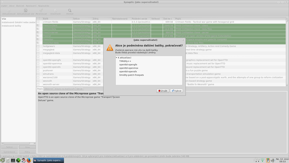 Následnou instalaci aplikací je možné realizovat v prostředí programu Synaptic. Ten se pochopitelně v kombinaci s APT/RPM postará o závislosti.