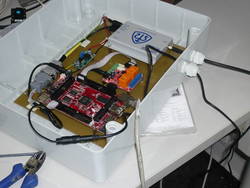 Takto seskládaný hardware začíná vypadat přepláceně, obzvláště, pokud bychom chtěli zapojit další čidla, moduly apod. V takovém případě se vše řeší návrhem vlastního shieldu. Shield je znám ze světa Arduina a je to vlastně deska, kterou si navrhneme, umístíme si na ní vše, co potřebujeme (v našem případě napájení, měnič napětí, relátka, termo čidlo, UART nebo případně RS232) a pak jí jen zeshora zamáčkneme celou do Olimexu. Máme pak jeden uhlazený celek bez kabelů zabírající minimální prostor. V rácmi prvních testů je však zbytečné toto řešit, shield se vyplatí až při větším nasazení.