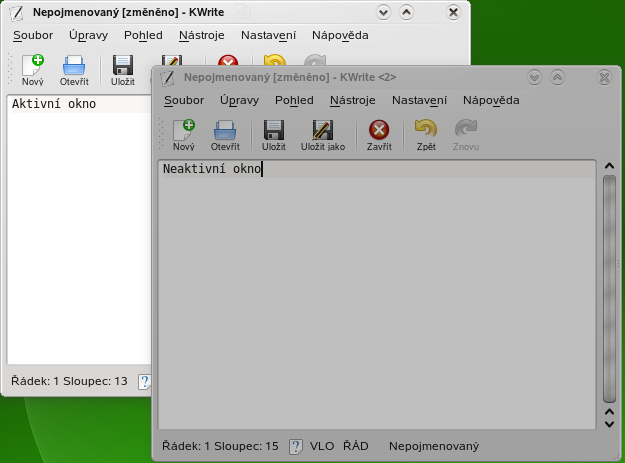 Říká se, že obrázek vydá za tisíc slov, takže abychom neunavovali čtenáře nudným textem, následuje ukázka schopností KWinu. Pro vášnivé čtenáře je text pod obrázky.