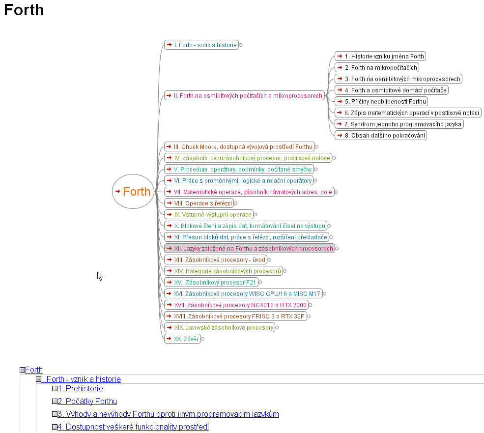 Obrázek 2: Myšlenková mapa převedená do formátu HTML a zobrazená v grafickém WWW