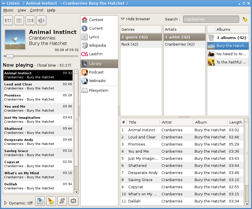 ~/audio/c/cranberries/bury-the-hatchet/01.ogg. Používám Quod Libet -- používat cokoli bez hudební kolekce by pro mě bylo zbytečně složité.