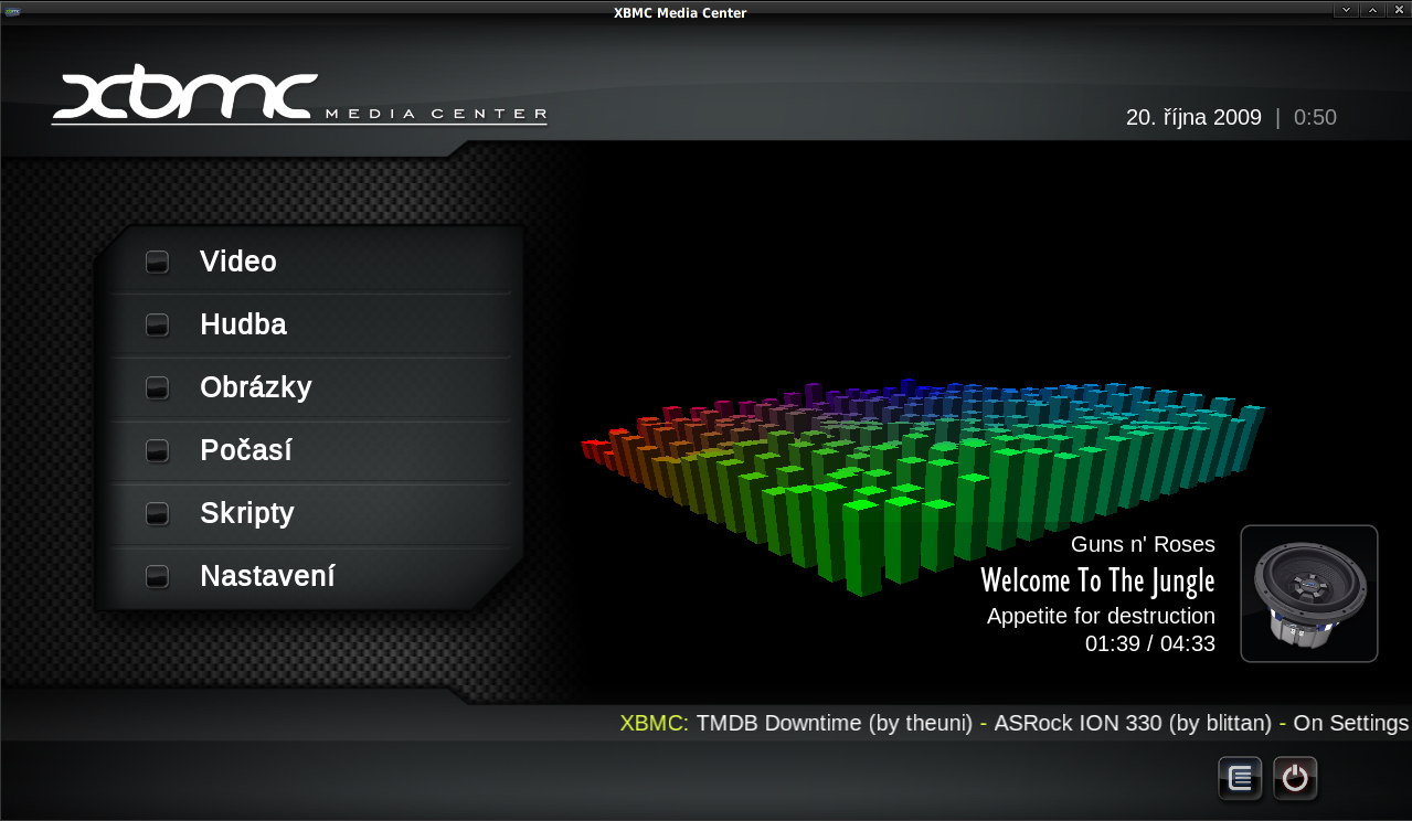 Zajímavým kouskem je XBMC (XBox Media Center). Jedná se o multimediální centrum licencované pod GPL, které se postará o přehrání vaší hudby, videí a prohlížení fotek, a to vše jak z lokálních, tak síťových úložišť. XBMC navíc poskytuje informace o počasí a je rozšiřitelné pomocí skriptů (rozumí Pythonu). Každá sekce má samozřejmě svá možná i nemožná nastavení. Nepoužíval jsem tuto aplikaci nijak zvlášť dlouho, ale věřím, že jakmile si na ni člověk zvykne, stane se pro něj velmi pohodlným přehrávačem veškerého multimediálního obsahu.
