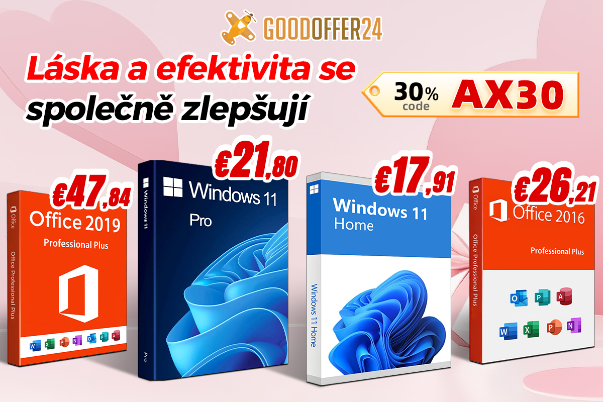 Kupte Windows 11 Pro, Office 2019 nebo hry na sv. Valentýna od Goodoffer24.com! Jednoduše klikněte na odkaz nebo na domovskou stránku Goodoffer24.com.
