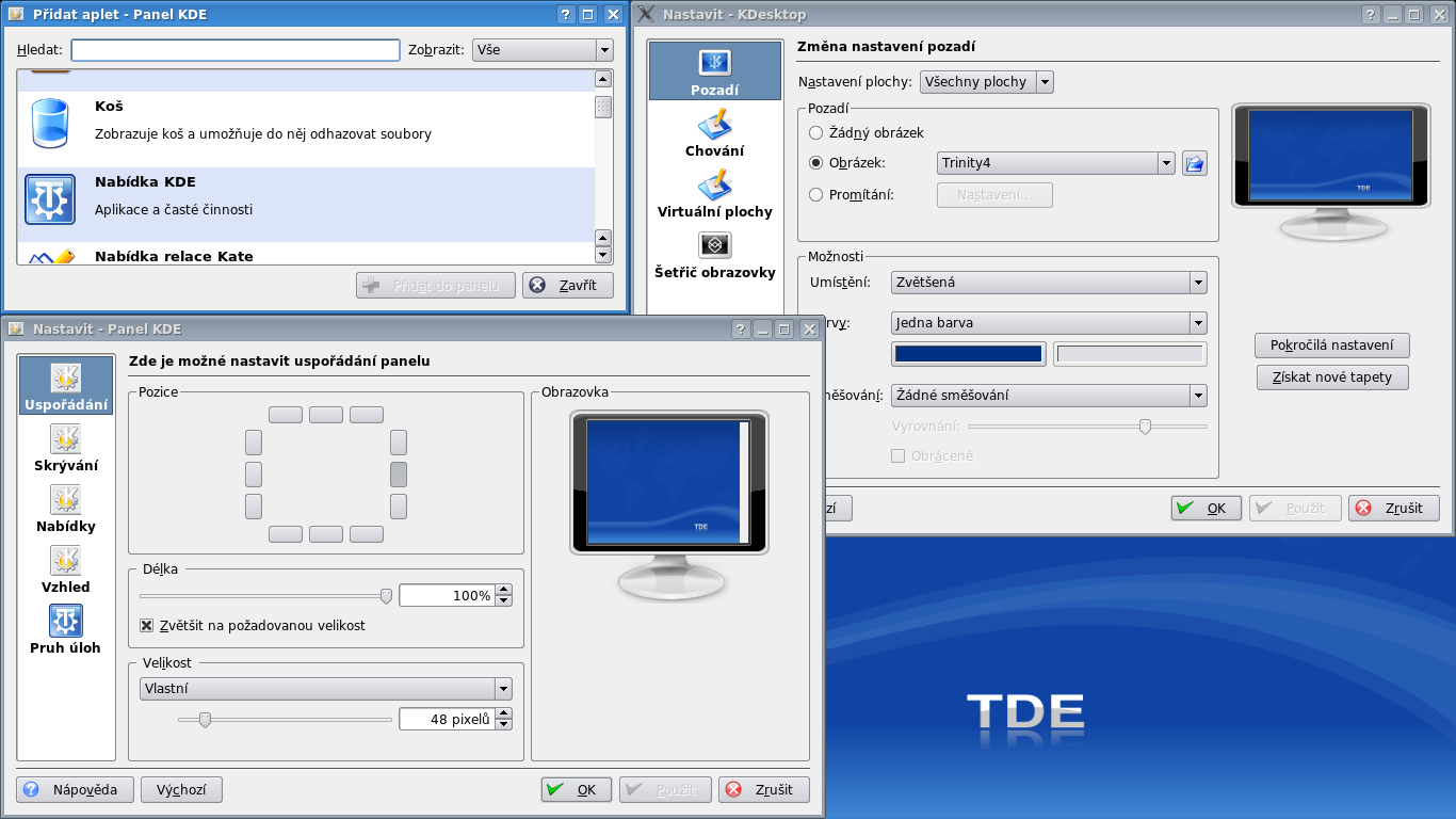 Pokud chcete TDE vyzkoušet i vy, můžete tak učinit — pokyny naleznete na webu projektu. Balíčky jsou připraveny alespoň pro Ubuntu, Debian, Slackware a Fedoru. V případě aktuálního Ubuntu 12.04 jsem narazil na to, že repozitáře byly připraveny na verzi 11.10 a starší, ale když jsem je systému vnutil, nesetkal jsem se s výraznými komplikacemi. Jediným chytákem bylo, že jsem si pro správnou funkčnost např. konfiguračních nástrojů musel vytvořit superuživatelský účet (ano, sudo nestačí).