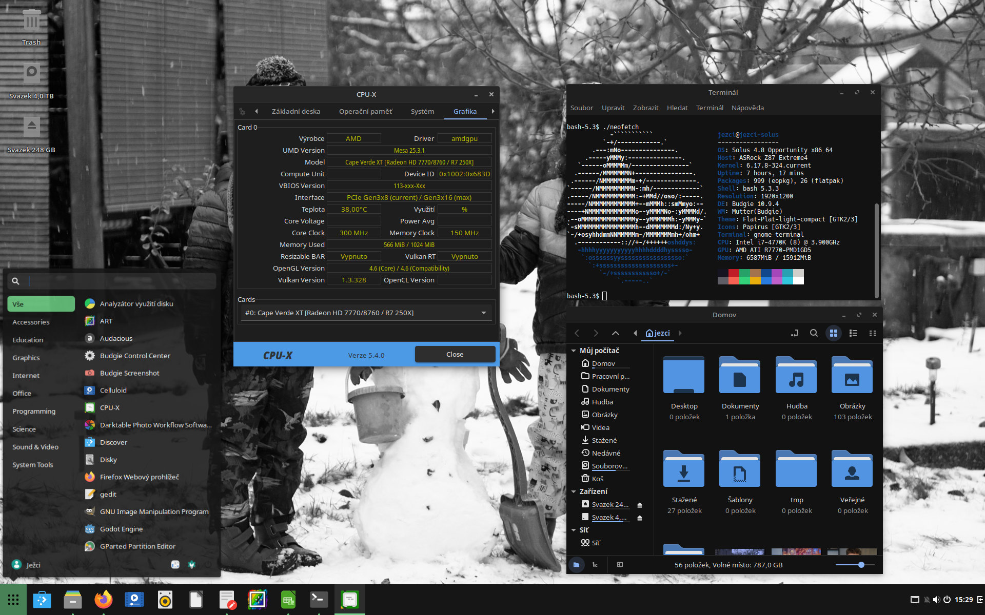 Aktuální Solus 4.8 s Budgie 10.9.4 na Intel Core i7-4770 + Radeon HD 7770. Více k dojmům na Rootu.