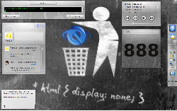 KDE 4.4, průhledný styl Plasmy, widgety Plasmacon a Poznámky, dekorace i motiv Skulpture.
