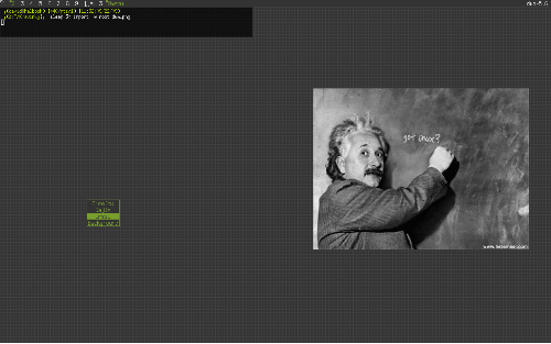 to je jen obrázek zobrazejen pomocí "feh" jen tak aby ta plocha nebyla na screenu tak prázdná. Pokud ale má někdo zájem o tenhle obrázek Einsteina tak tady.