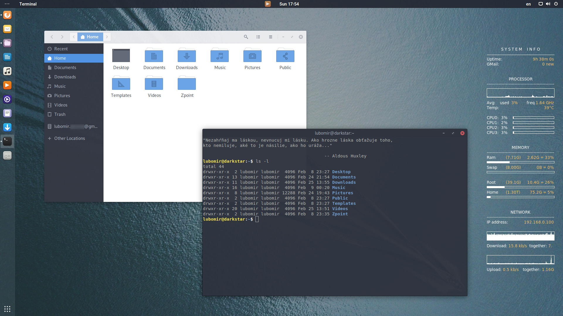 Gnome shell téma je upravená, pôvodne to nebola žiadna výhra. Sekciu DashToDock som vzal z témy Matcha a mierne upravil. A samozrejme font top panelu a popup menu je tiež zmenený z prťavého shitu na niečo príjemnejšie.