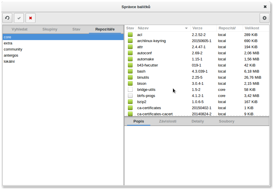 Mají svoje antergos a samozřejmě i přímo od Archu - core, extra a community.