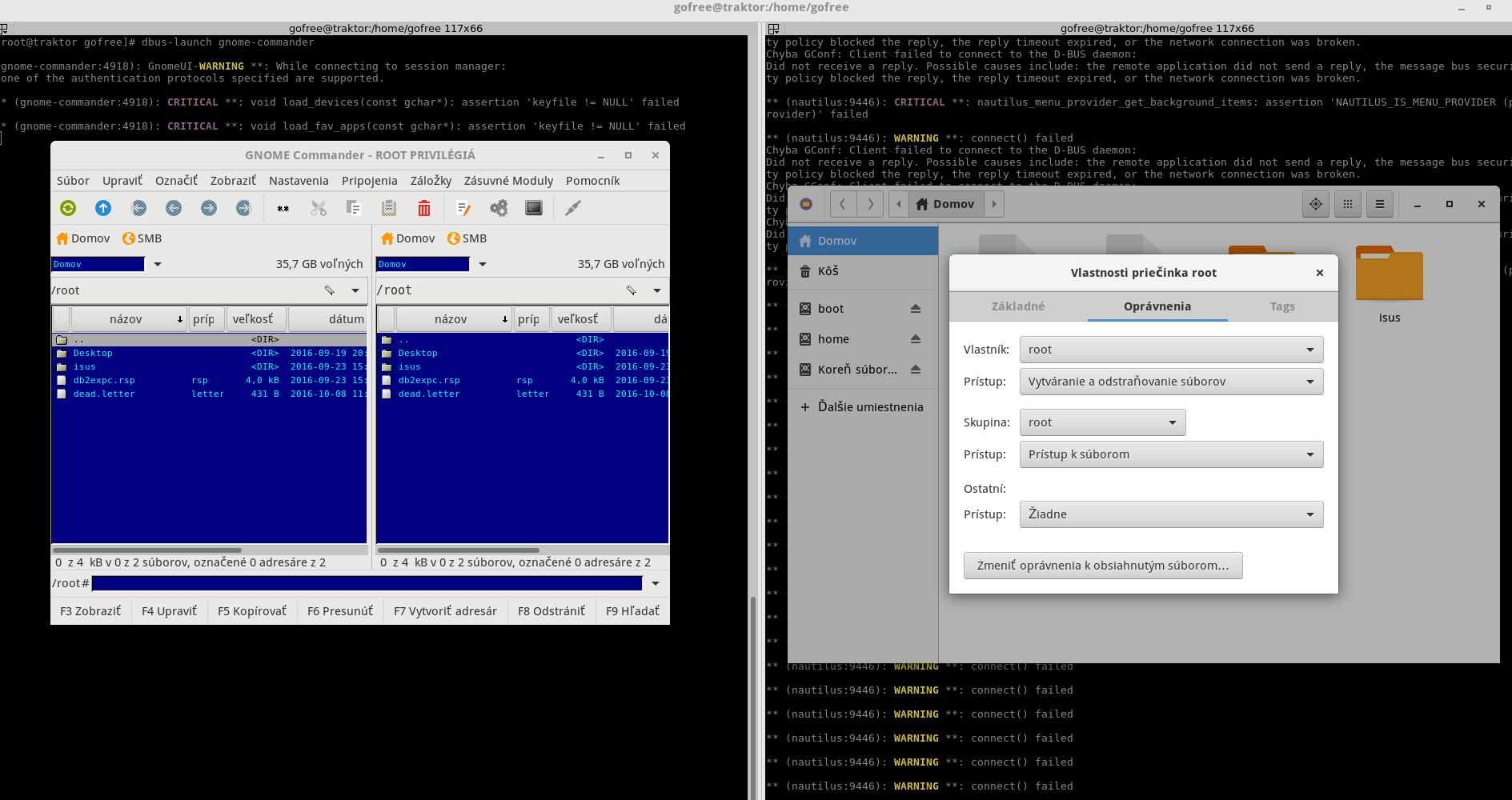 jsou problémy se spuštěním Nautilusu nebo Gnome-Commanderu jako rootNačo to prosím ťa používaš? Nikdy som to nepoužil a ani neviem načo by som to použil.