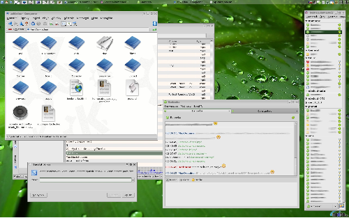 Arch GNU/Linux, KDE-3.5.8, Ikonky : OS-K (120MiB), Fonty : DejaVu, Úvodní obrazovka : LinuxEvolution, Ikonky na ploše vypnuté.