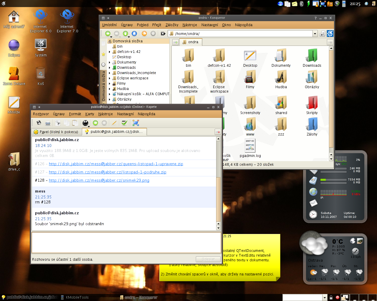Můj současný desktop. Pokud by se někomu líbilo téma, tak je to BlackOrange.