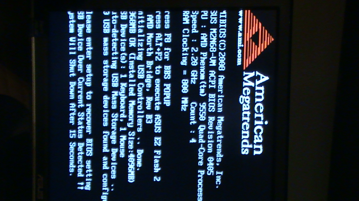 USB mass storage devices found and configurating... To mas nejakej externi HDD? zkus to odpojit...