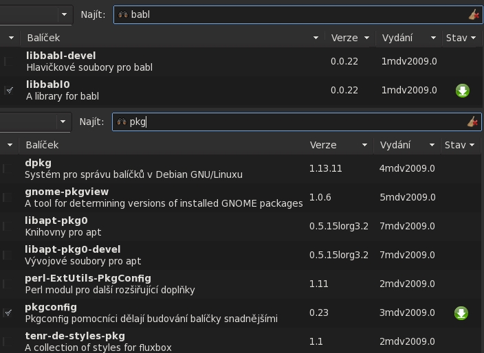 Myslel jsem, že to vyřešim doinstalací balíčků pkg nebo babl, ale zjistil jsem že něco už nainstalovano je, viz.příloha. Chybí nějake z těch dalších nebo je problem jinde?
