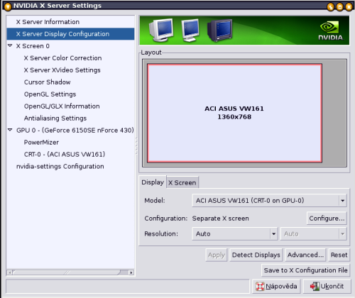 OS Ubuntu 8.10, Monitor Aci Asus VW161 jeho max. rozlišení je 1360x768 Px(16:9).