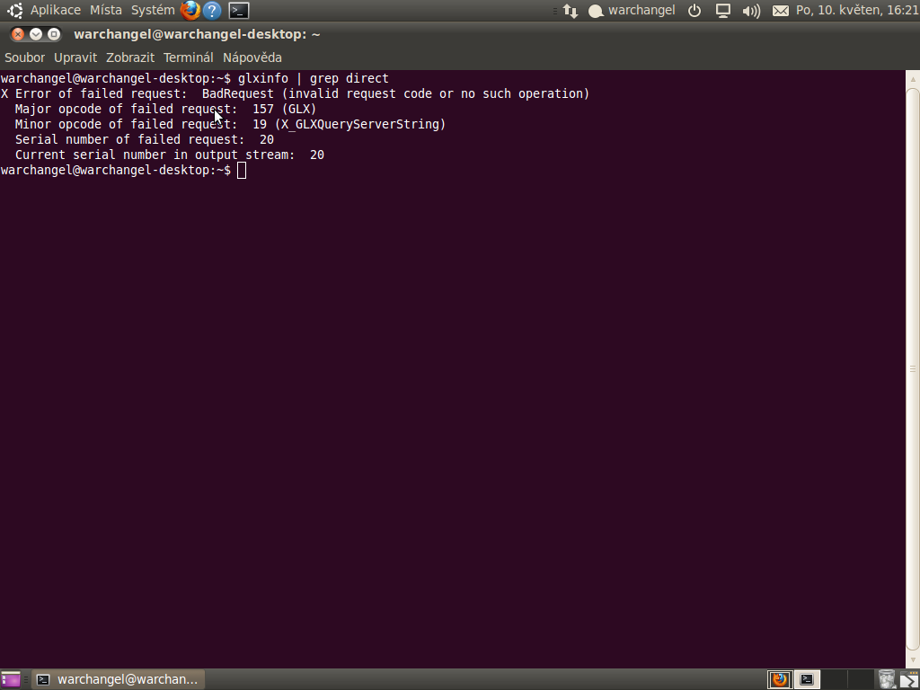 maam nainstalovany linux: Ubuntu 10.04 a odkedy som dnes nainstaloval najnovsie Ati ovladace tak mam problemy so zobrazovanim (napr ked si chcem zapnut extra efekty vzhladu tak mi napise hlasku ze sa nedaju zapnut. Skusal som zadat do terminalu prikaz: glxinfo | grep direct ,ele vyhadzuje mi stale toto okno (vid priloha) Ak s tym mate niekto skusenosti, prosim pomozte mi to spojazdnit