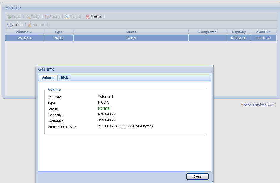 /dev/md2 on /volume1 type ext3Ok chápu , takže když v budoucnu dokoupím další 3ks 1TB disky, tak postupně budu dopočítavat pole a pak zvětším souborový sytém pomocí