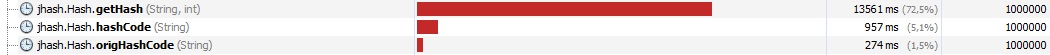 Jen pro srovnání, jsem změřil NetBeans profilerem rychlosti všech tří hashů (můj originální - getHash, moje implementace hashCode - hashCode a originální hashCode - origHashCode). Výsledky jsem přiložil jako obrázek.