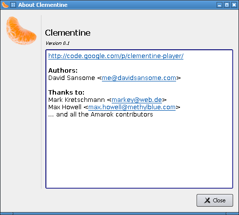 Clementine je hudební přehrávač a správce hudební kolekce. Jde o port Amaroku 1.4 (Amarok z KDE 3.x) do Qt 4, jelikož Amarok 2 mnohým nevyhovuje.