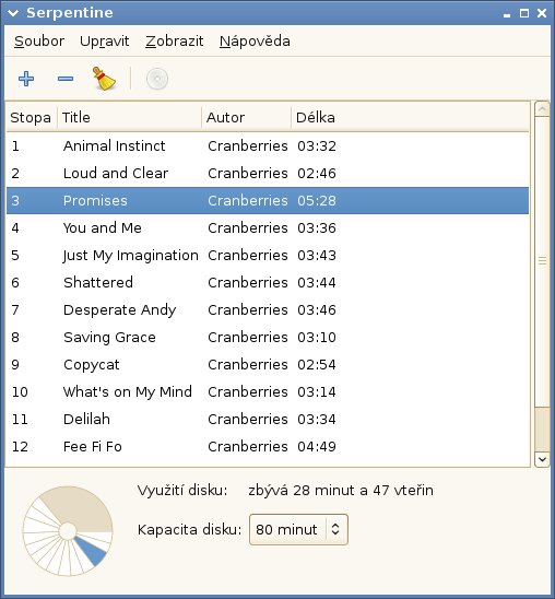 Serpentine je nástroj GNOME pro vypalování AudioCD disků. Cílem projektu je jednoduchá, užitečná a kompatibilní aplikace.