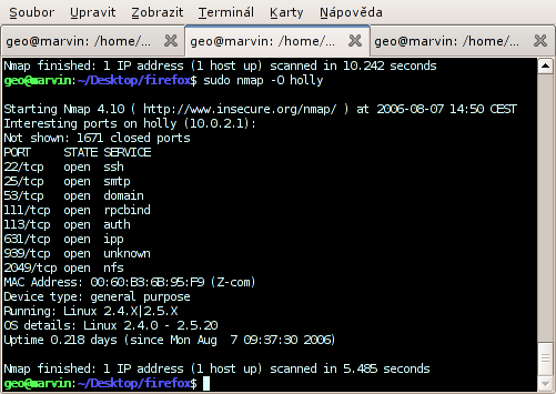 | Domovská stránka: | http://insecure.org/nmap/ (799×) |