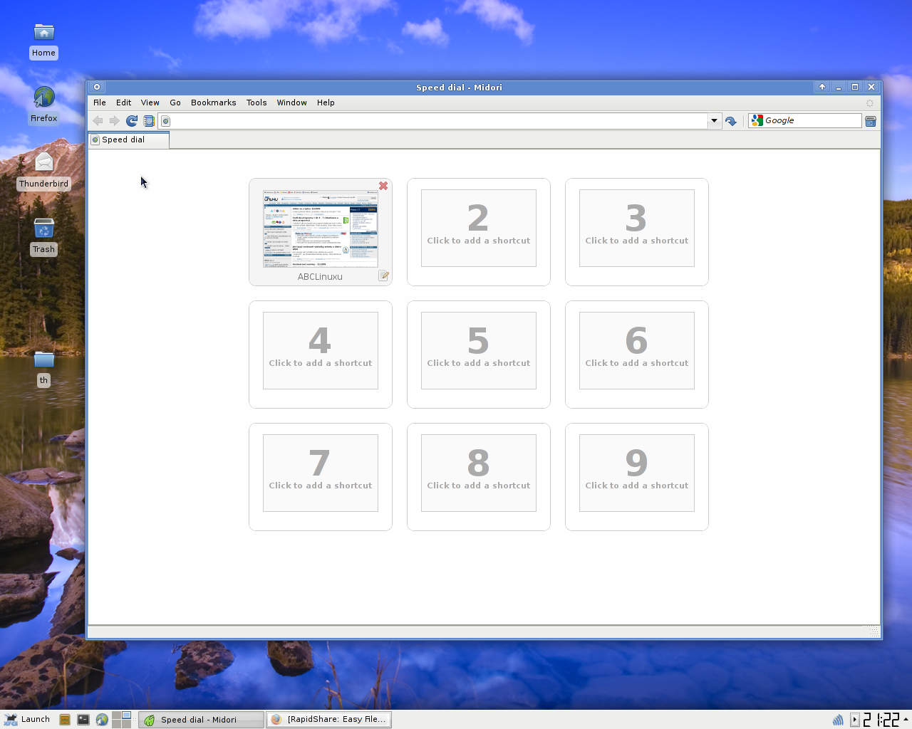 Jinak se mi Midori stále víc líbí, jen by to chtělo podporu HTTPS, abych ho mohl používat na notebooku na krátké zkouknutí ABCLinuxu.